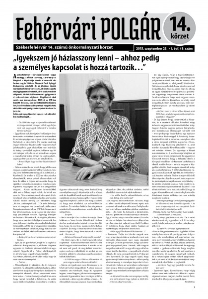 Megjelent a Fehérvári Polgár legújabb lapszáma. Ezúttal Székesfehérvár 14. számú önkormányzati körzete kerül terítékre.